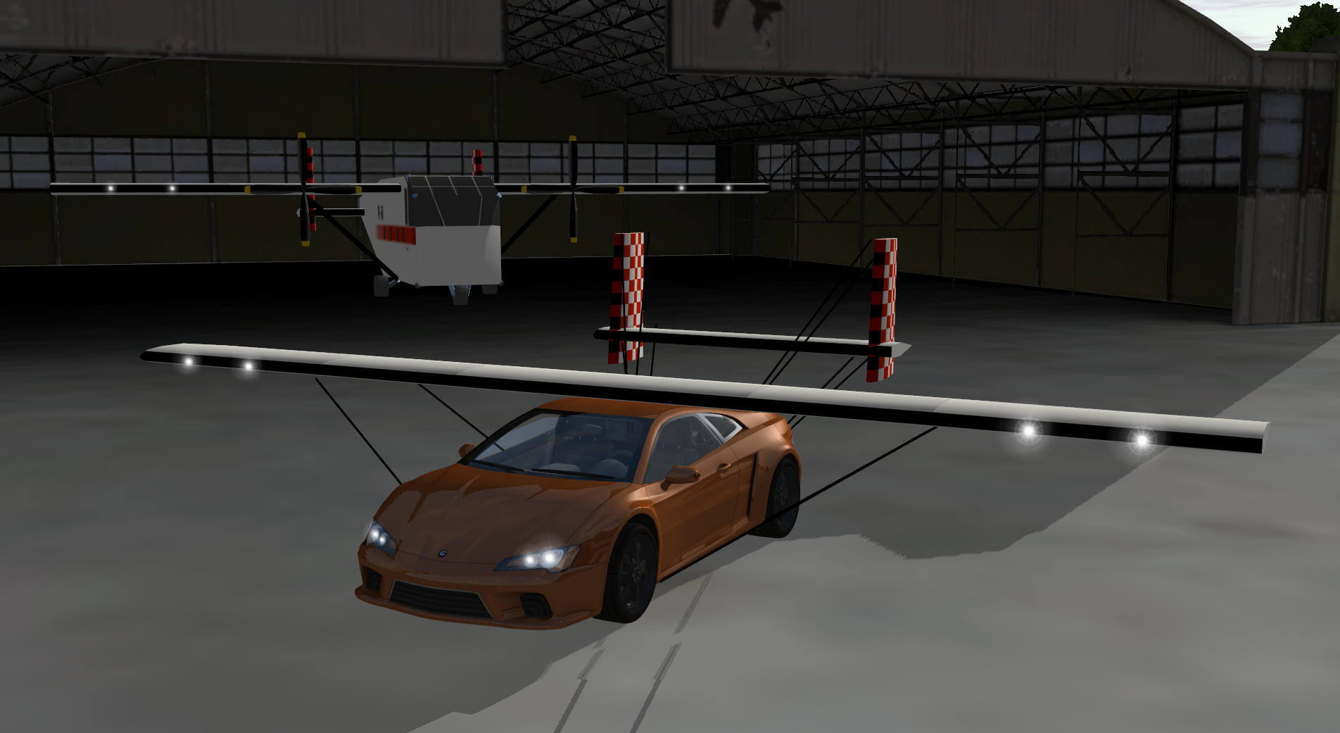 Today's fun and totally realistic project: Merged the wings from the Skyvan onto the MZ2 with the help of the node renumbering tool. Works a lot better than expected, though its not the easiest thing to fly 😆